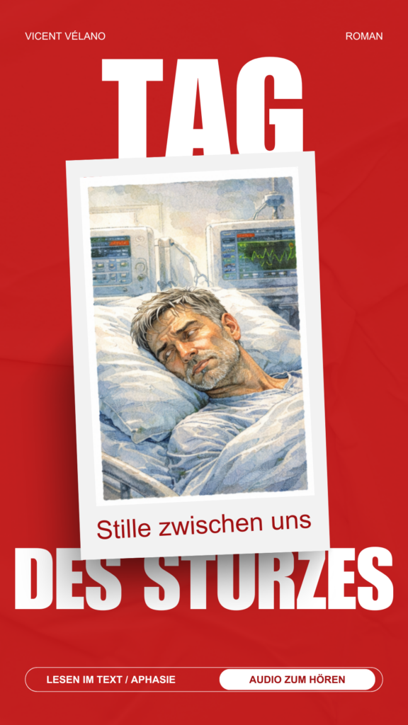 Für Menschen mit Aphasie, siehe weiter unten! Nach einem Schlaganfall verliert Vincent nicht sein Denken, nicht seine Gefühle – aber den selbstverständlichen Zugang zur Sprache. Worte, einst Werkzeug und Heimat, werden schwer, brüchig und fremd. Im weißen Licht der Klinik, in der Logopädie und im vorsichtigen Alltag mit Eva beginnt ein mühsamer Weg zurück: in […]